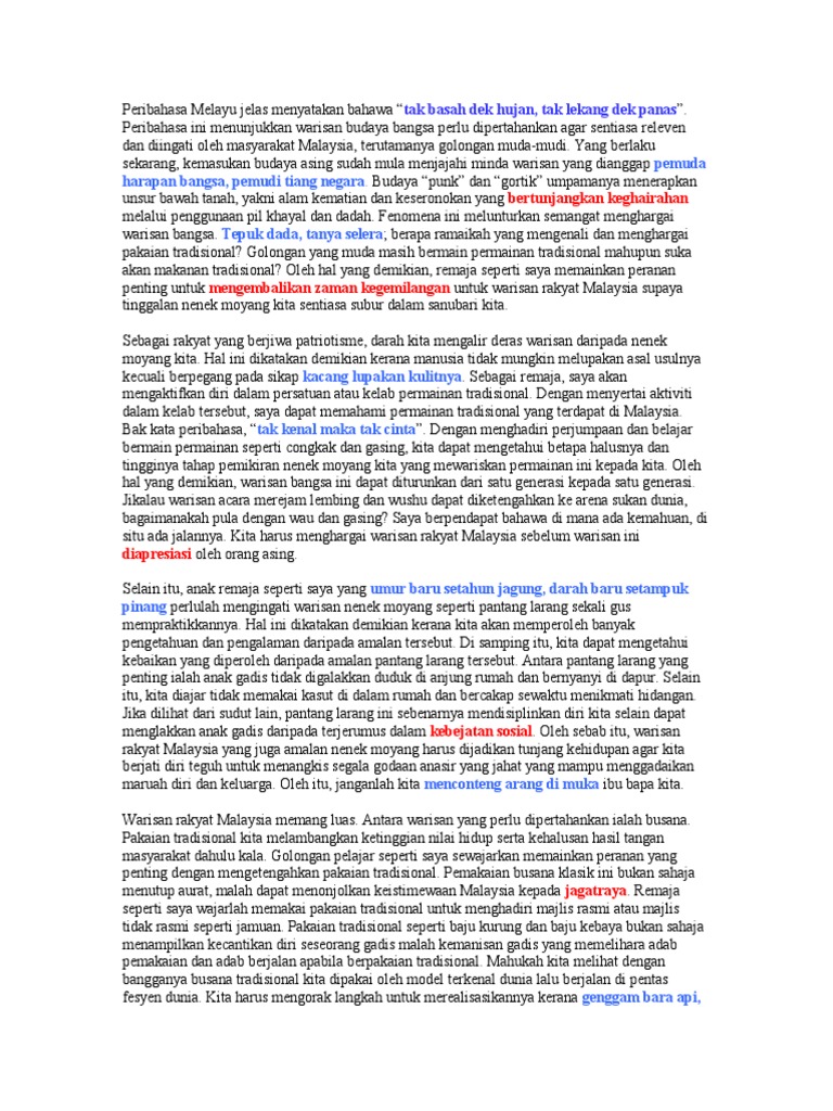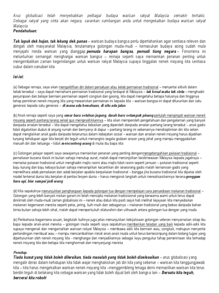 Karangan Faedah Mengekalkan Warisan Budaya Malaysia Pdf
